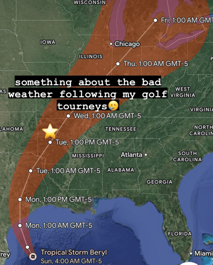 It wasn’t all fun and games. I didn’t have a ton of experience playing in the south. In junior and college golf, I played in a few tournaments in Florida, Georgia, Texas, Oklahoma, Arkansas and Louisiana (well, actually not Louisiana.) The conditions are quite different – the greens are usually Bermuda grass, which is really grainy and can be tricky to read for someone who is accustomed to Bent or Poa annua grass. The weather is different too, and in 2024, it seemed to be especially bad, with storms following us everywhere we went.